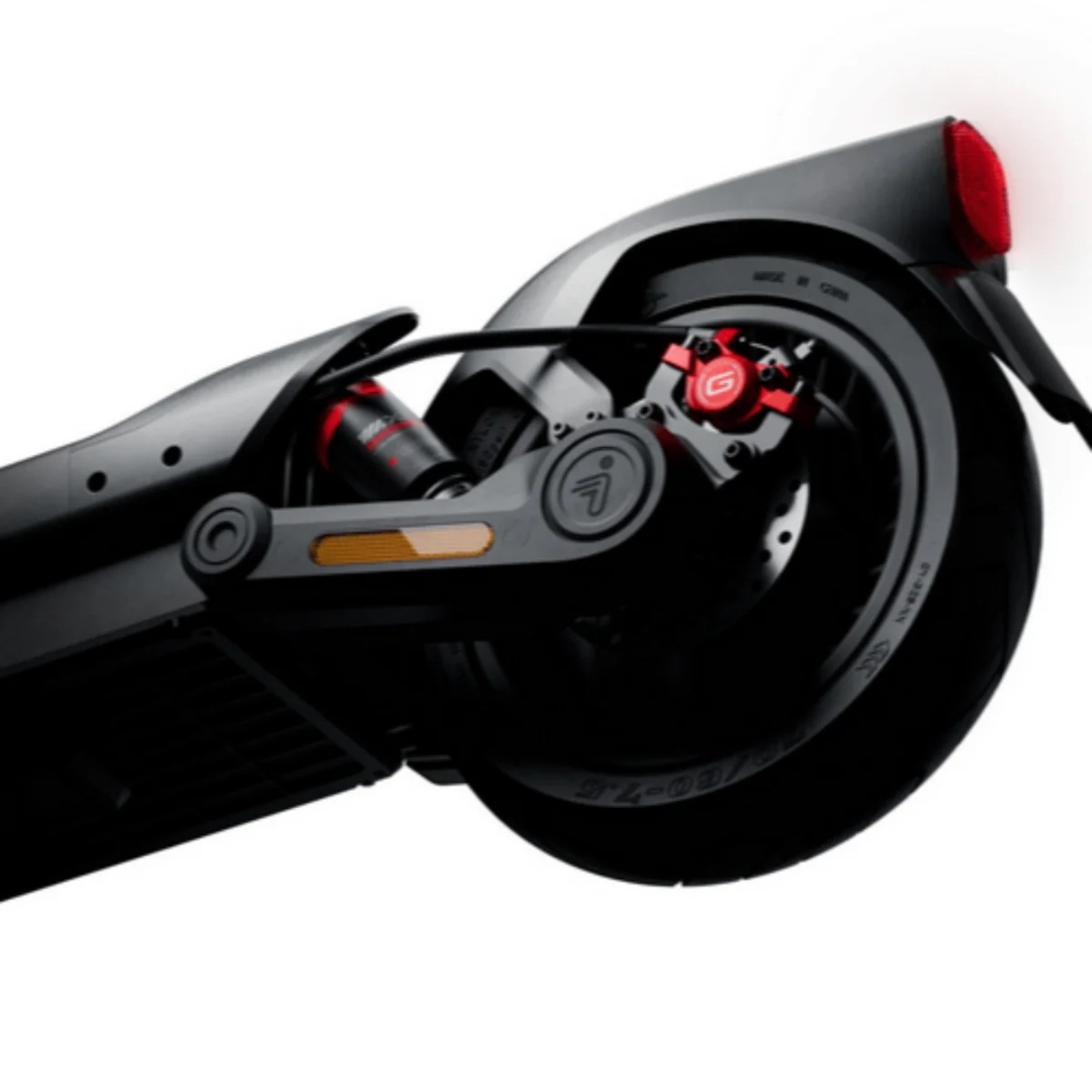 La MAX G3E se distingue également par son système de freinage à disques (avant et arrière), ses clignotants intégrés, et ses pneus tubeless de 11 pouces avec gel auto-réparant, garantissant sécurité, stabilité et confort de conduite en toute situation.
